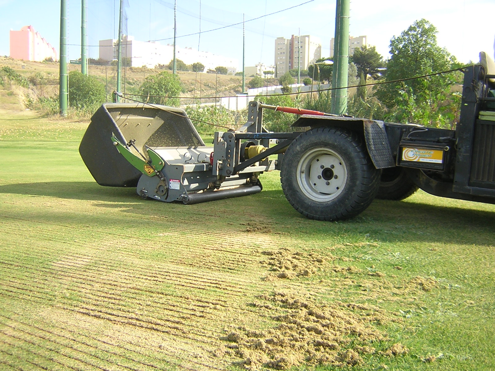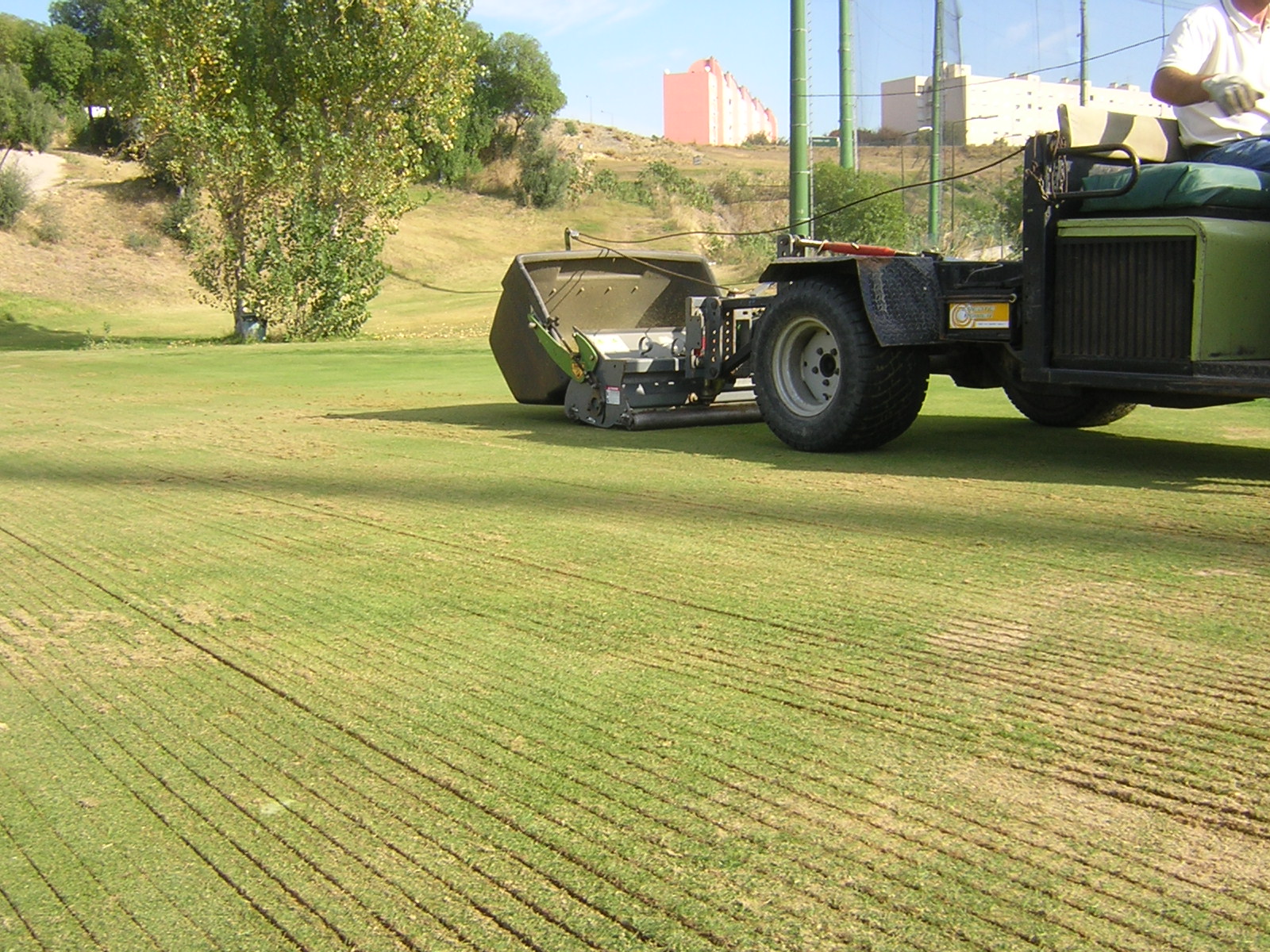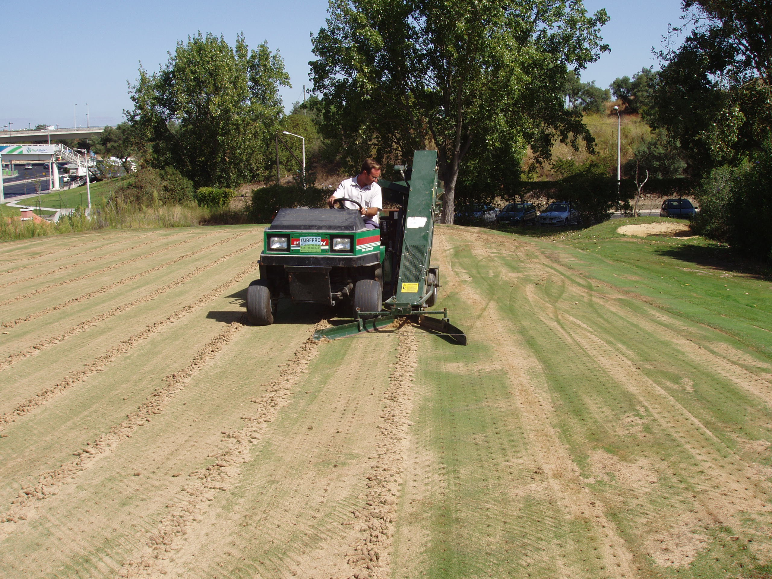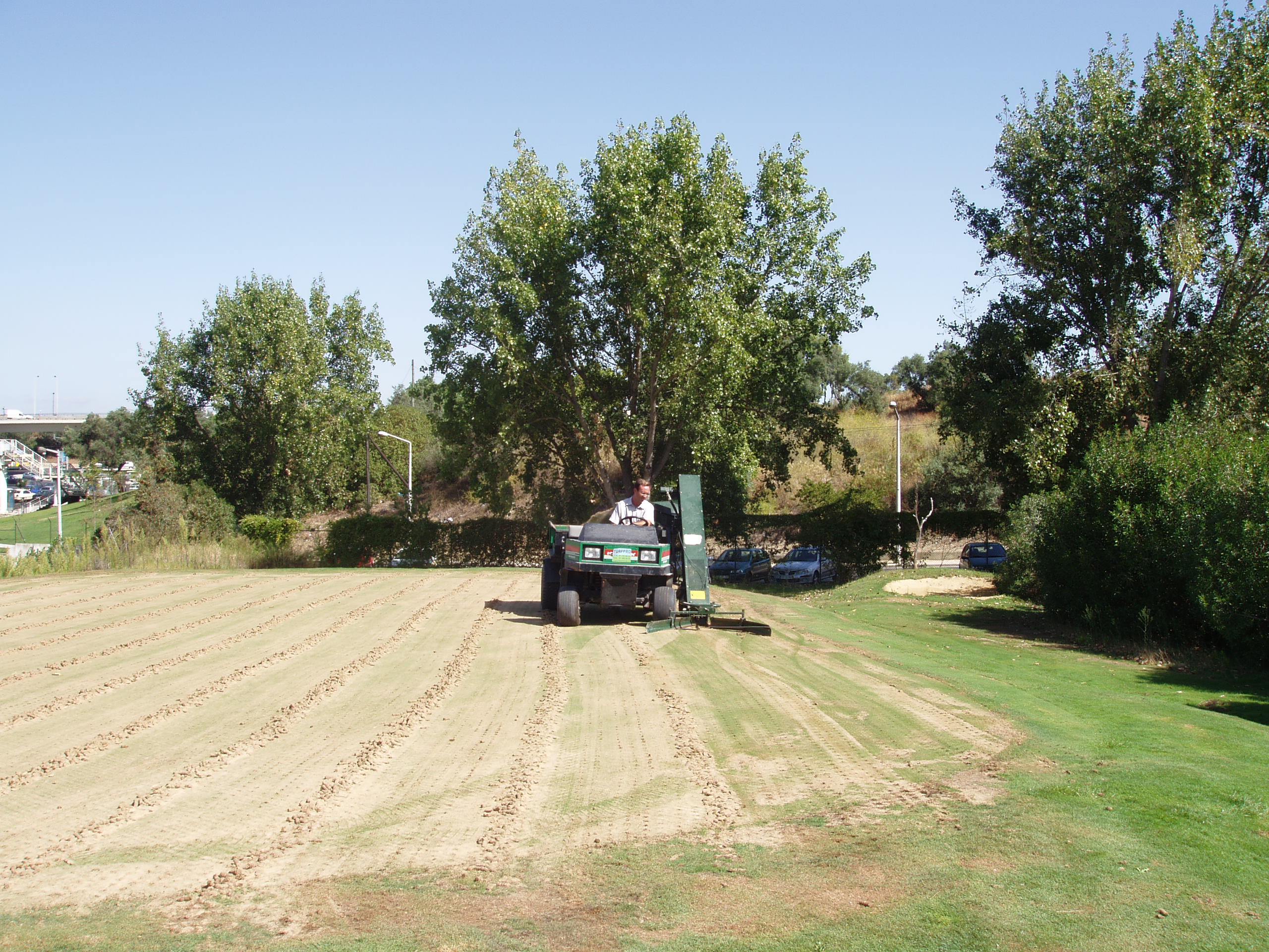 Trabalhos de manutenção e escarificação de greens e relvados desportivos
